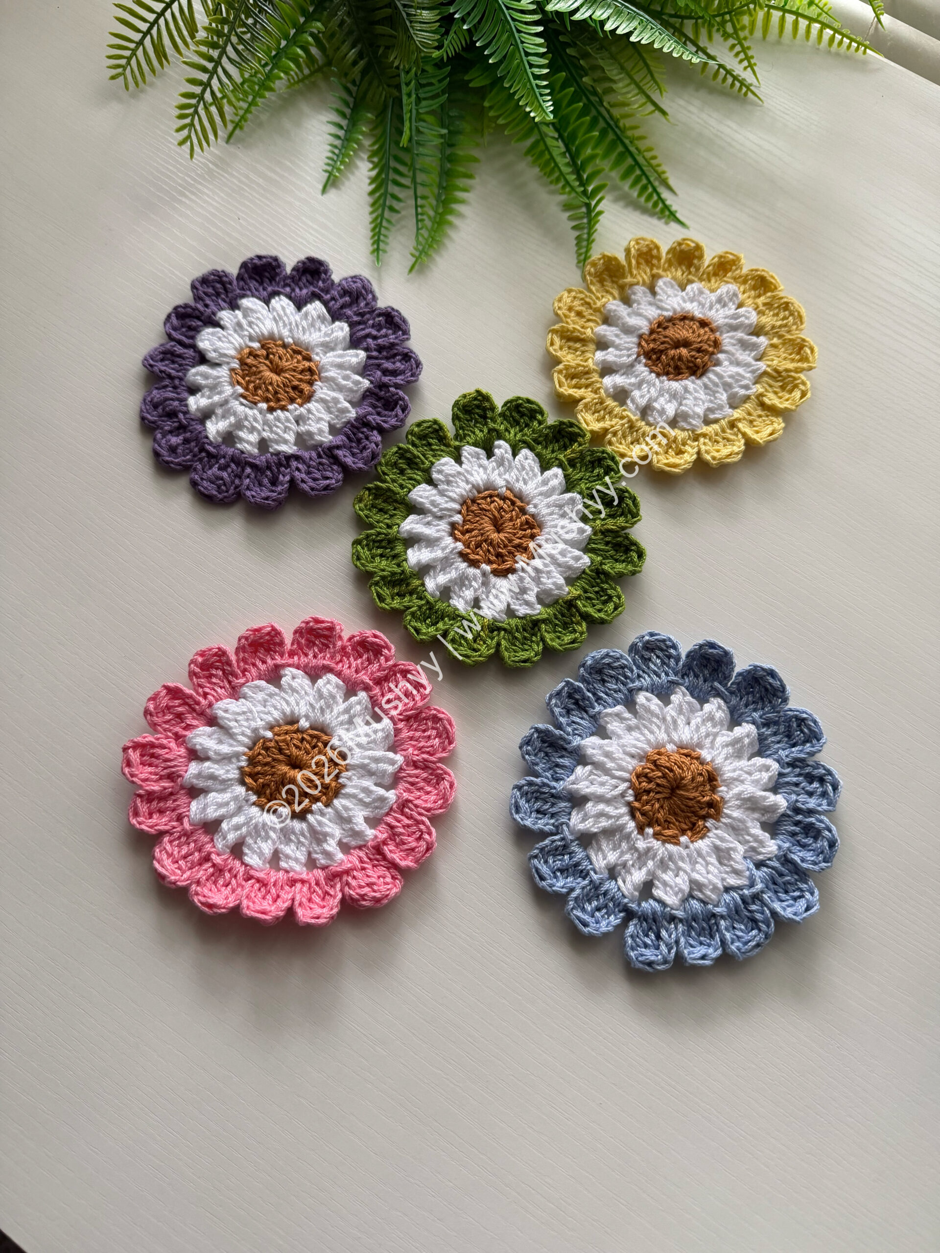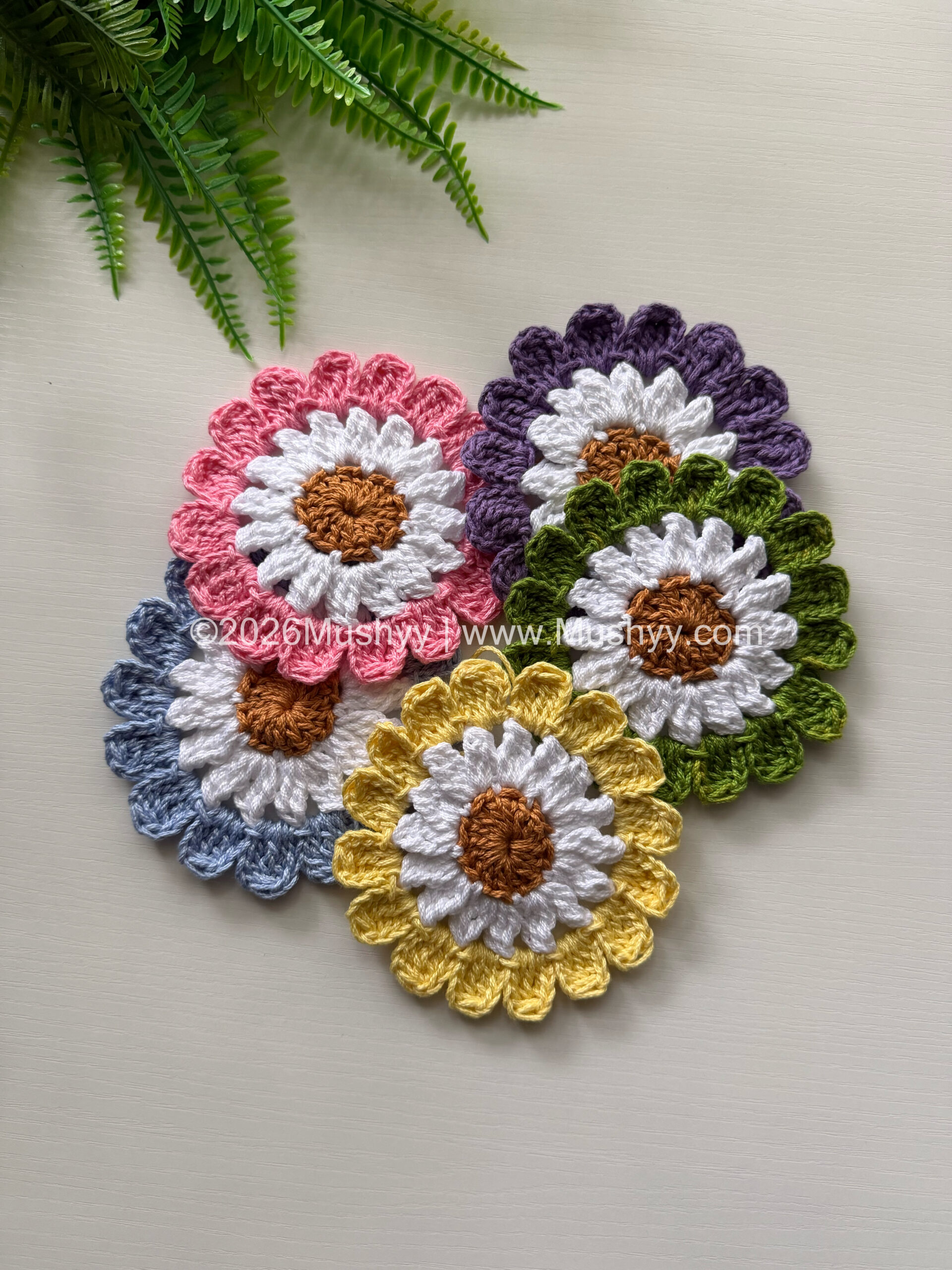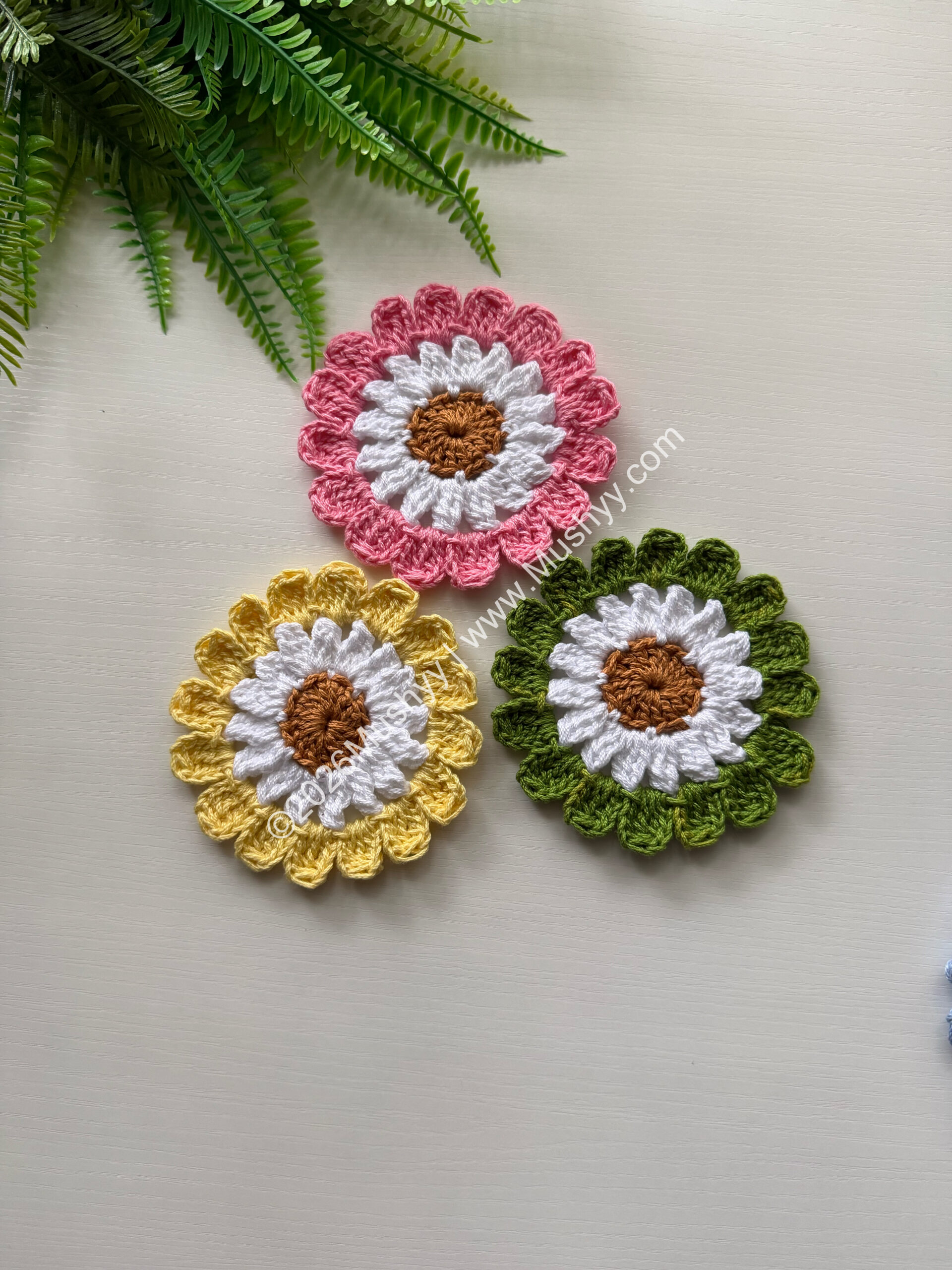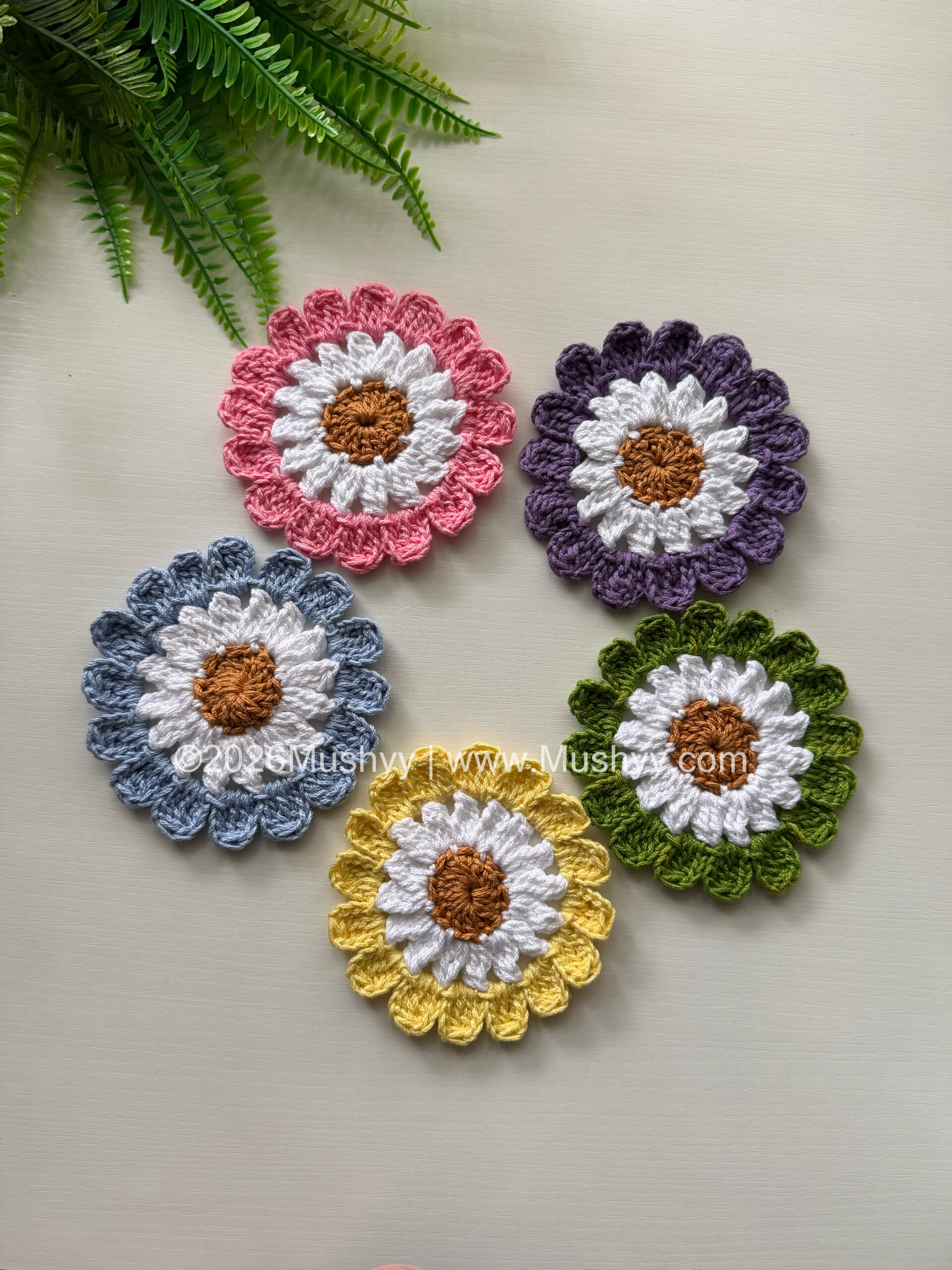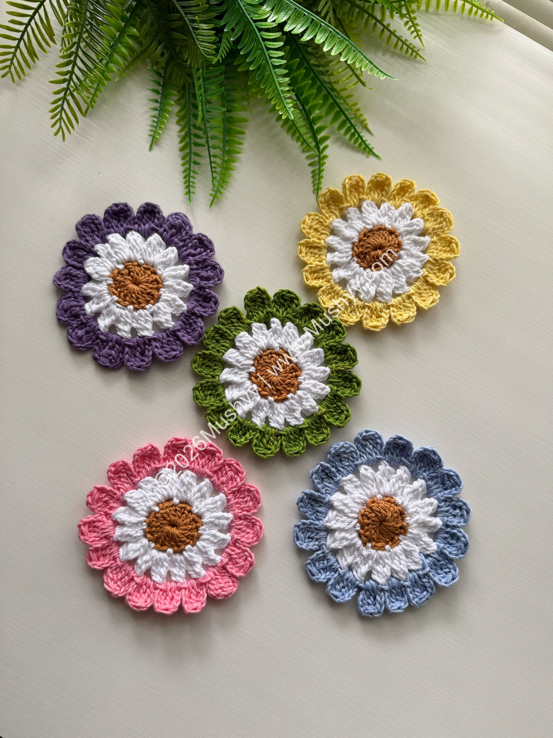 Spring Daisy Crochet Coaster PatternBy Mushyy